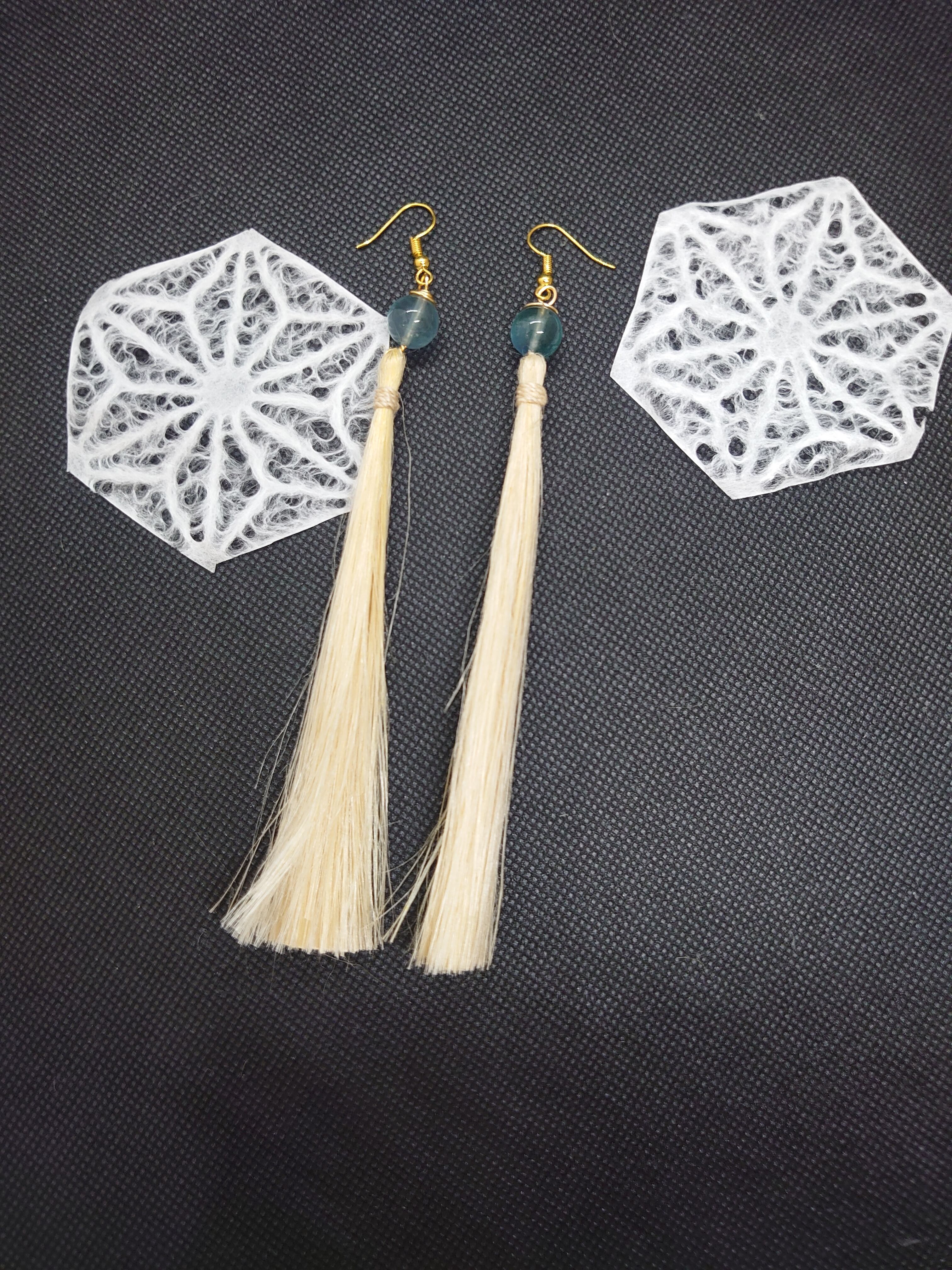 無漂白の国産野州麻の特上精麻で作ったアクアオーラクォーツのピアスです。